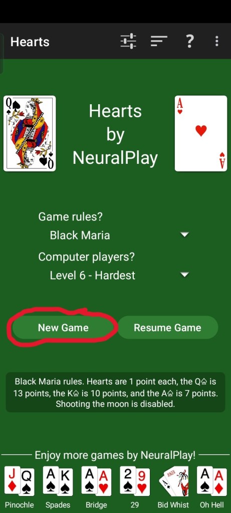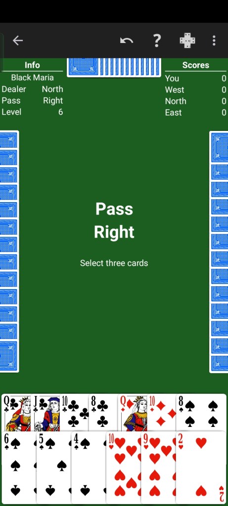 Black Maria is a variant of hearts that can be played by three or four players. Like all games based on Hearts, it is an evasion / trick avoid gave, with the objective of avoiding capturing penalty cards in tricks. The ‘Black Maria’ is the queen of spades – which is the largest penalty card in the game. In Black Maria, all hands are played at no trump (there is never a trump suit). Players must follow suit if they can, otherwise they may play any card.